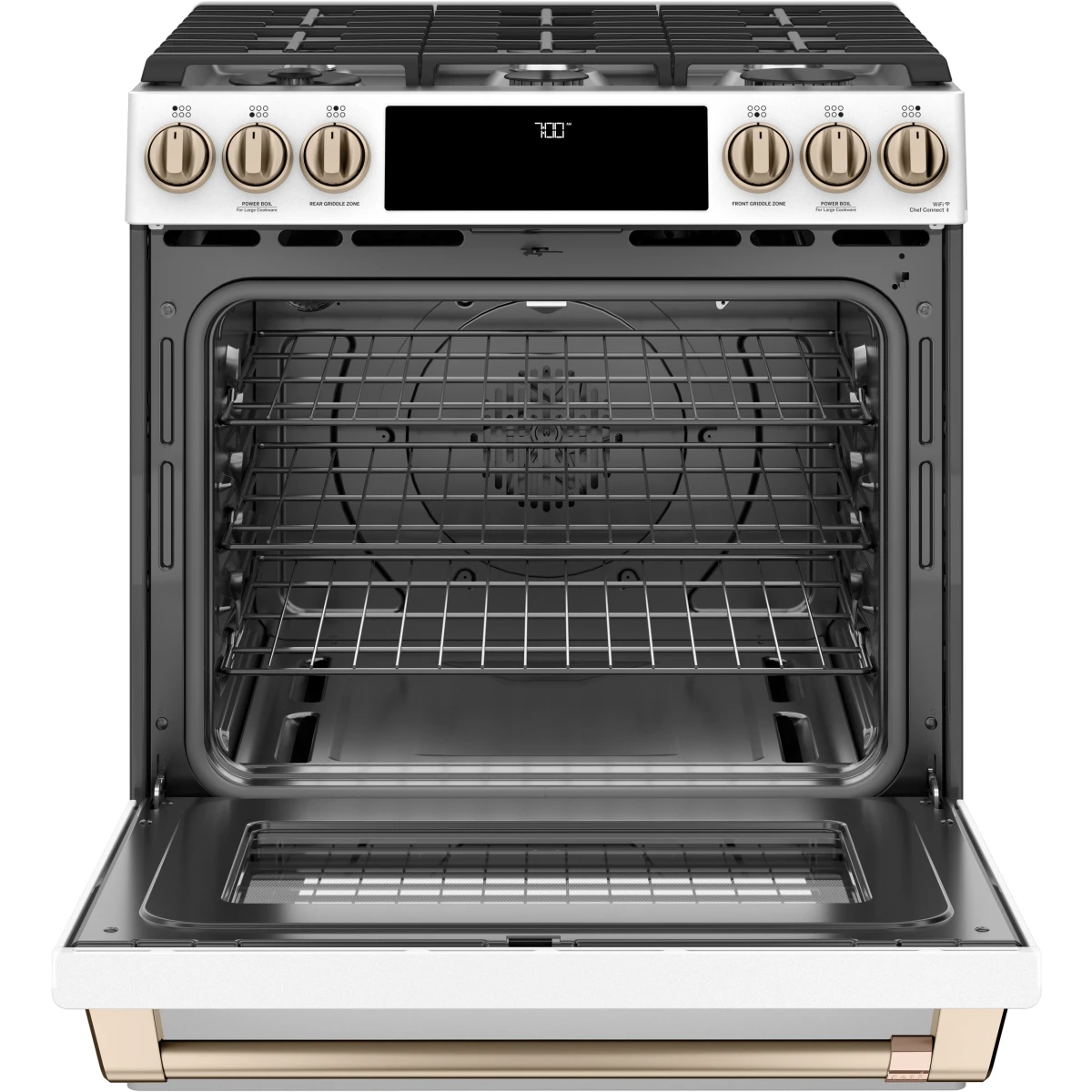 - True Convection: A third heating element and fan circulate heated air evenly around food for professional-quality baking and roasting.