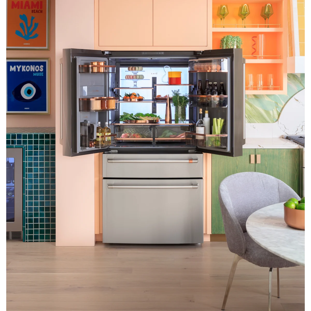 • This stylish refrigerator’s Convertible Drawer with Glass Dividers offers a clean, aesthetic storage solution that allows for simplified organization.