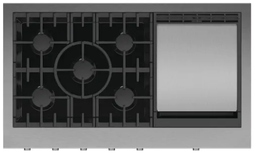 - This rangetop is built to last with craftsmanship in every detail, featuring real stainless steel, cast-iron trivets, and titanium-coated dials.