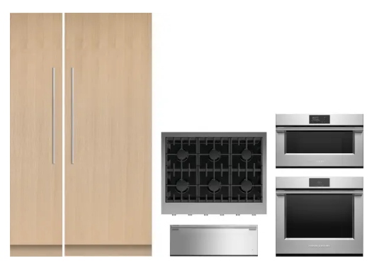 • Cooking Appliances: The remaining appliances in the 6-piece package would also be integrated, panel-ready models from Fisher & Paykel to complete the kitchen suite. These could include: