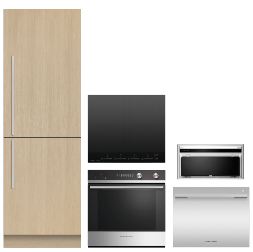 This package features a full kitchen suite of integrated appliances from Fisher & Paykel, including:
