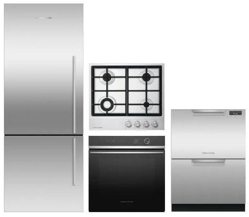 • Range hood: To complete the 4-piece package, a range hood is included. The Fisher & Paykel Series 7 30″ Wall Mounted Range Hood (HC30PCX1) with a powerful 600 CFM fan is a probable match.