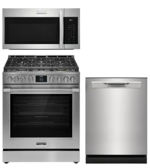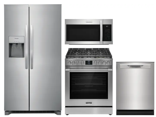 FRID061201 4 Piece Kitchen Appliances Package with Side-by-Side Refrigerator, Gas Range