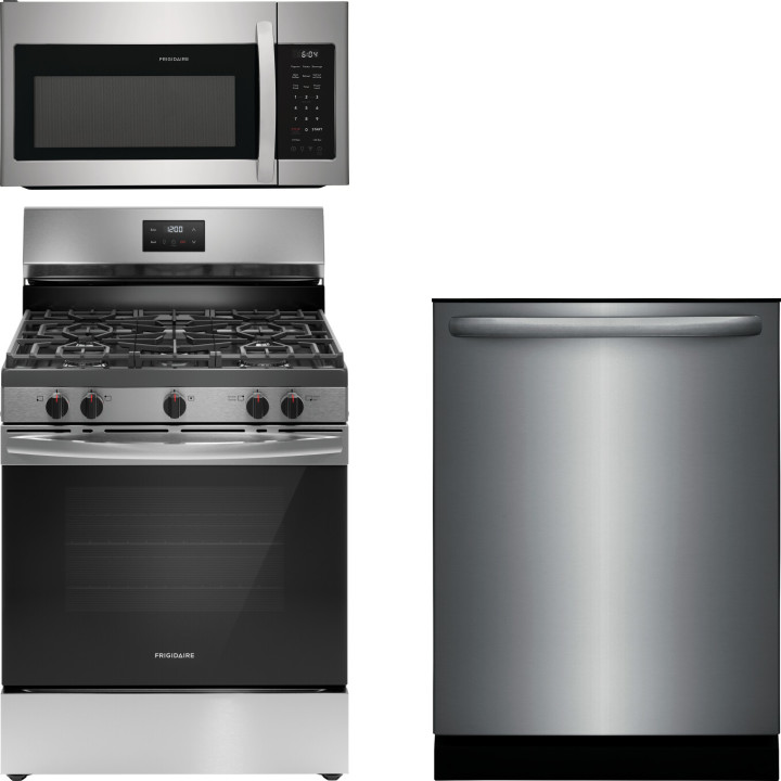 Frigidaire 3-Piece Kitchen Appliances Package with Gas Range, Dishwasher and Over-the-Range Microwave – Stainless Steel