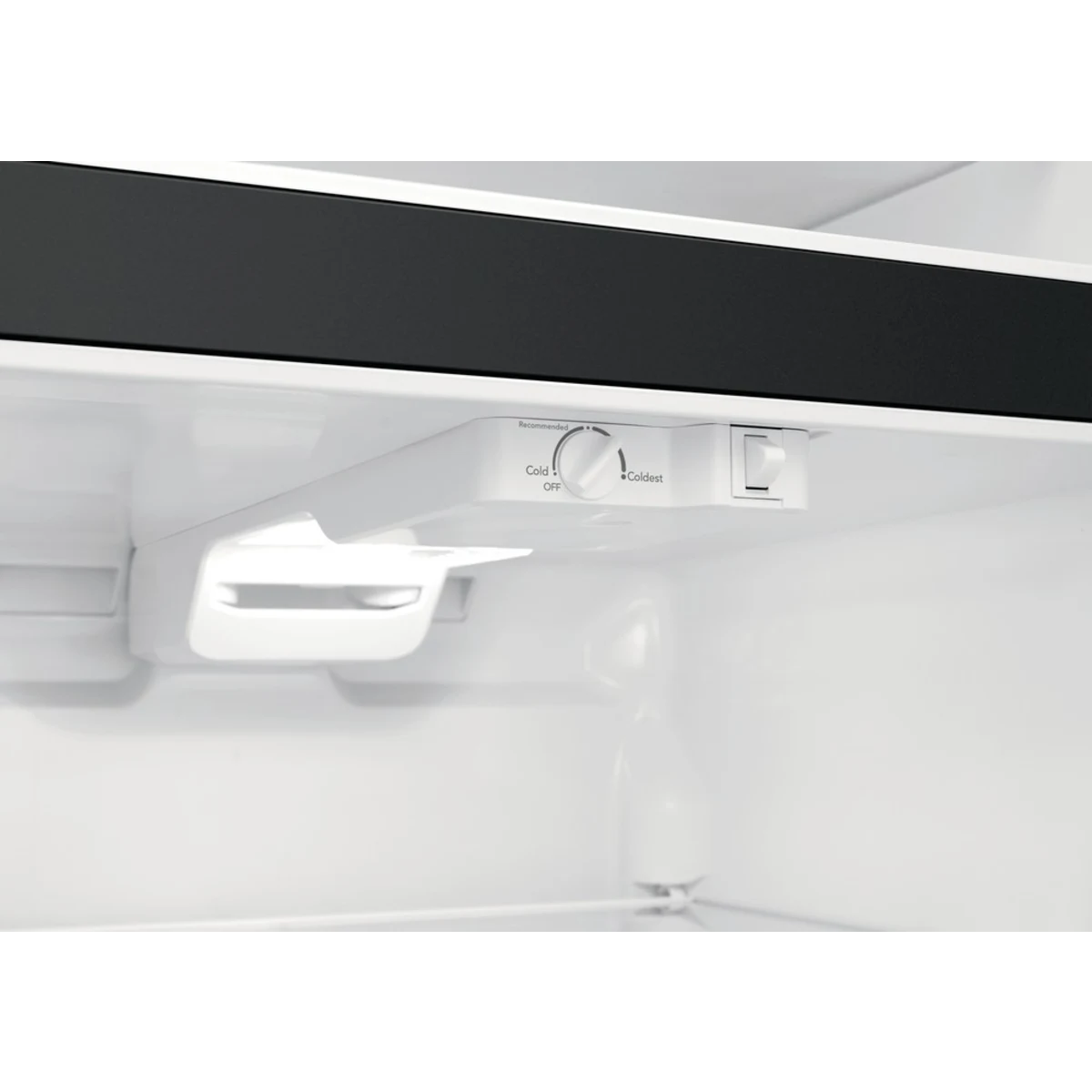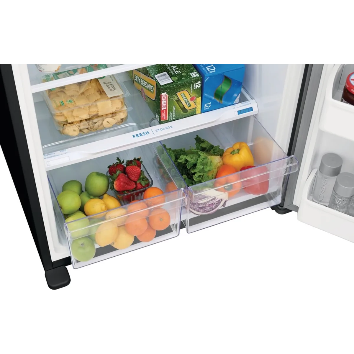 - Full-width door shelves provide gallon storage and quick access.