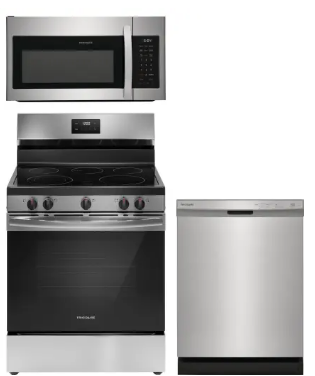 FRRERADWMW888961837 4 Piece Kitchen Appliances Package with Side-by-Side Refrigerator, Electric Range, Dishwasher and Over the Range Microwave in Stainless Steel