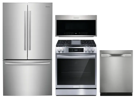 FRRERADWMW4478 4 Piece Kitchen Appliances Package with Gas Range, Over the Range Microwave