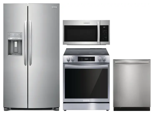 FRRERADWMW4541 4 Piece Kitchen Appliances Package with Side-by-Side Refrigerator, Electric Range