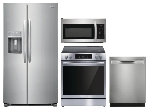 FRRERADWMW4556 4 Piece Kitchen Appliances Package with Side-by-Side Refrigerator, Electric Range