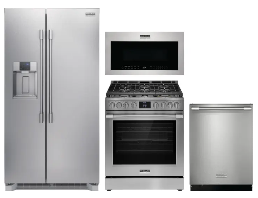 FRRERADWMW4577 4 Piece Kitchen Appliances Package with Side-by-Side Refrigerator, Gas Range
