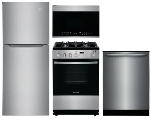 FRRERADWMW888961407 4 Piece Kitchen Appliances Package with Top Freezer Refrigerator, Gas Range