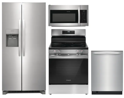 FRRERADWMW888962011 4 Piece Kitchen Appliances Package with Side-by-Side Refrigerator, Electric Range