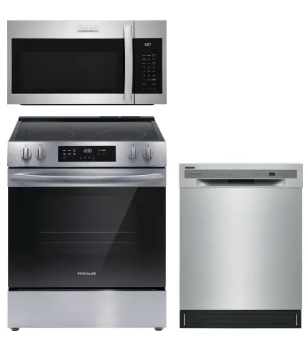 FRRERADWMW888962309 4 Piece Kitchen Appliances Package with French Door Refrigerator, Electric Range Dishwasher and Over the Range Microwave in Stainless Steel