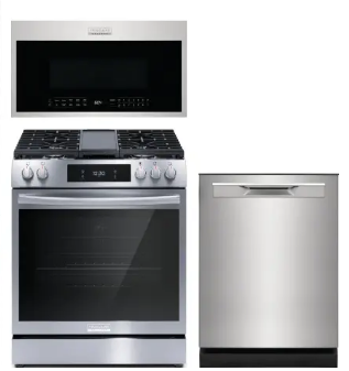 FRRERADWMW888962350 4 Piece Kitchen Appliances Package with French Door Refrigerator, Gas Range