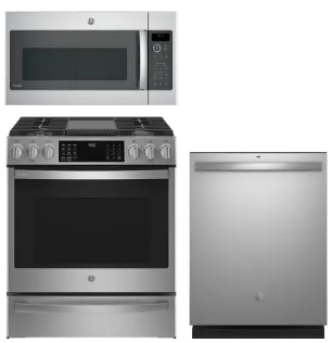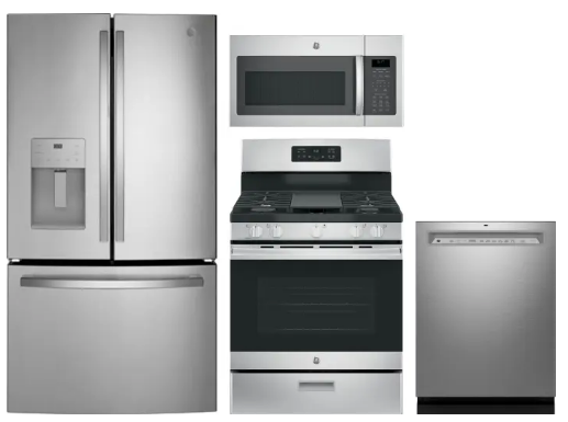 GE ERERADWMW103907 4 Piece Kitchen Appliances Package with French Door Refrigerator, Gas Range