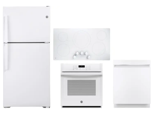 GE GERECTWODW101 4 Piece Kitchen Appliances Package with Top Freezer Refrigerator