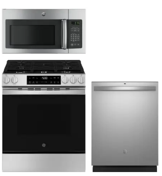 GE GERERADWMW104050 4 Piece Kitchen Appliances Package with Top Freezer Refrigerator