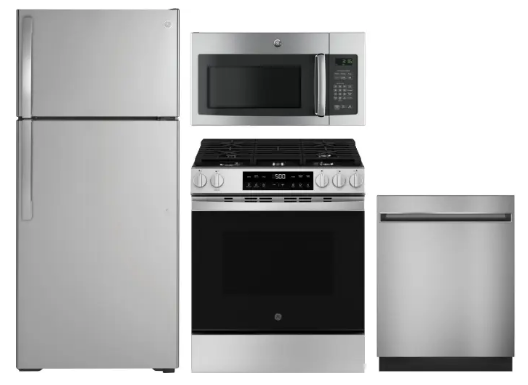 GE GERERADWMW104054 4 Piece Kitchen Appliances Package with Top Freezer Refrigerator