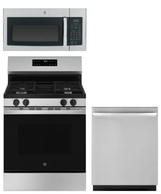 GE GERERADWMW104073 4 Piece Kitchen Appliances Package with Top Freezer Refrigerator