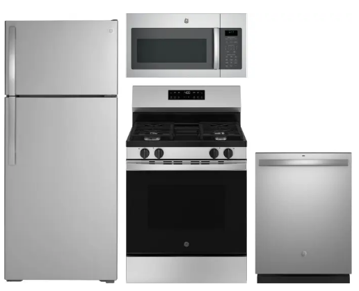 GE GERERADWMW104085 4 Piece Kitchen Appliances Package with Top Freezer Refrigerator