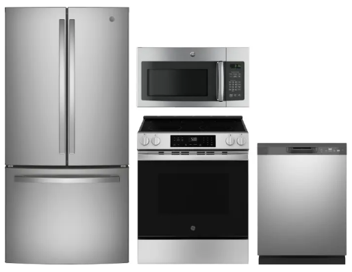 GE GERERADWMW104136 4 Piece Kitchen Appliances Package with French Door Refrigerator
