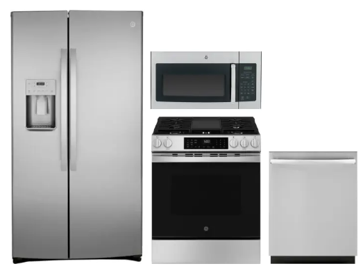 GE GERERADWMW104167 4 Piece Kitchen Appliances Package with Side-by-Side Refrigerator