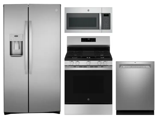 GE GERERADWMW104185 4 Piece Kitchen Appliances Package with Side-by-Side Refrigerator