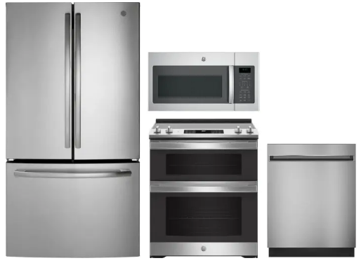 GE GERERADWMW4082 4 Piece Kitchen Appliances Package with French Door Refrigerator