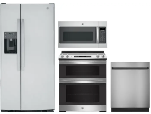 GE GERERADWMW4084 4 Piece Kitchen Appliances Package with Side-by-Side Refrigerator