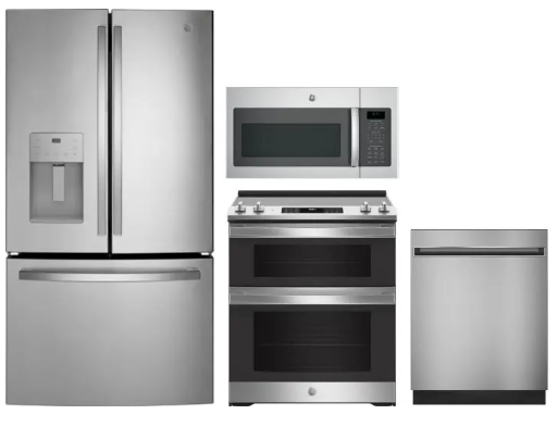 GE GERERADWMW4088 4 Piece Kitchen Appliances Package with French Door Refrigerator