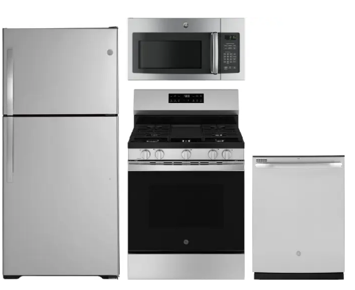 GE GERERAMWDW11245 4 Piece Kitchen Appliances Package with Top Freezer Refrigerator