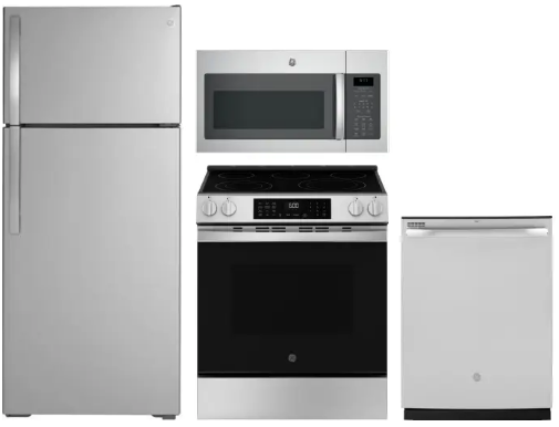 GE GERERAMWDW11255 4 Piece Kitchen Appliances Package with Top Freezer Refrigerator