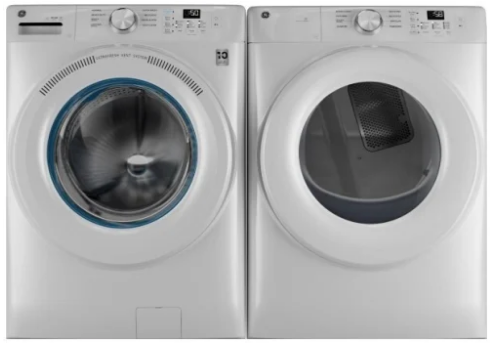 GE GEWADRGYWW350SS Side-by-Side Front Load Washer and Gas Dryer Set in White