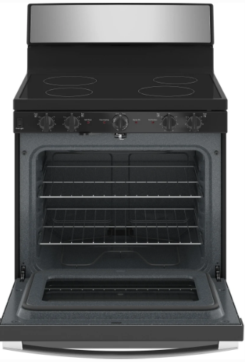GE JB480STSS 30 Inch Freestanding Electric Range with 4 Radiant Smoothtop Burners, 5.0 cu. ft. Oven Capacity : Stainless Steel