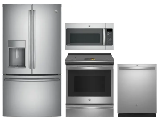 GE RERADWMW103848 4 Piece Kitchen Appliances Package with French Door Refrigerator