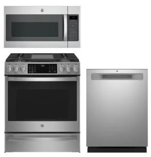 GE RERADWMW103852 Profile 4 Piece Kitchen Appliances Package with French Door Refrigerator