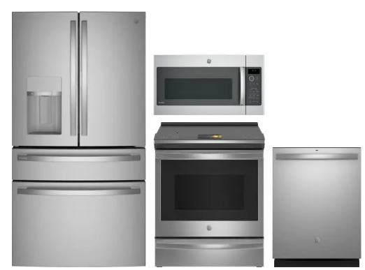 GE RERADWMW103916 4 Piece Kitchen Appliances Package with French Door Refrigerator