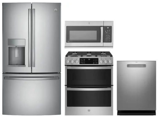 GE RERADWMW103995 4 Piece Kitchen Appliances Package with French Door Refrigerator