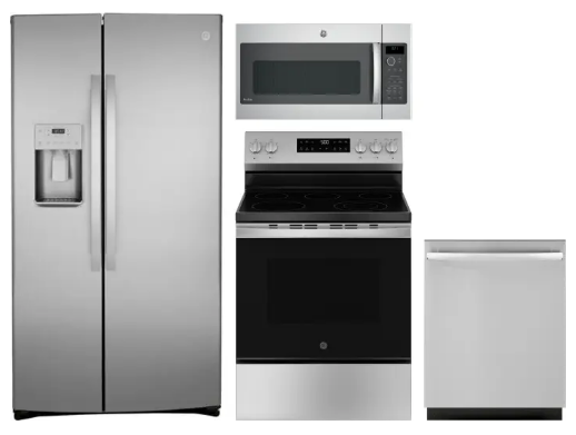 GE RERADWMW104187 4 Piece Kitchen Appliances Package with Side-by-Side Refrigerator