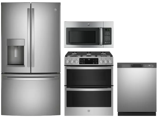 GE RERADWMW3632 4 Piece Kitchen Appliances Package with French Door Refrigerator