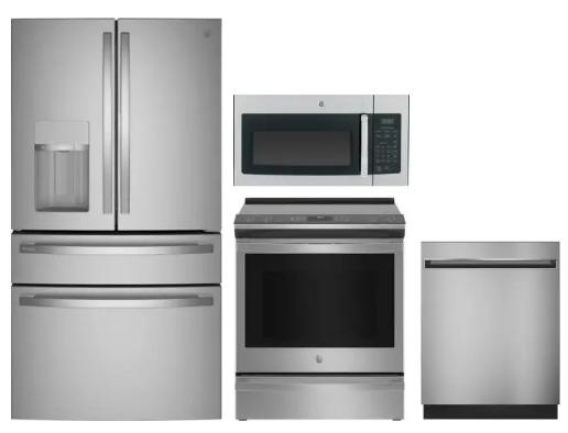 GE RERADWMW6723 4 Piece Kitchen Appliances Package with French Door Refrigerator
