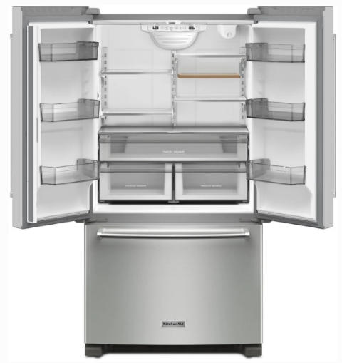 KRFC302ESS 36 Inch Counter Depth French Door Refrigerator with 22 cu. ft. Capacity, 5 Shelves, Gallon Door Bins, FreshChill™ Pantry, Interior Water Dispenser, Auto Ice Maker, and Star-K: Stainless Steel