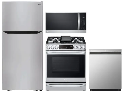 LG LGRERADWMW21080 4 Piece Kitchen Appliances Package with Top Freezer Refrigerator