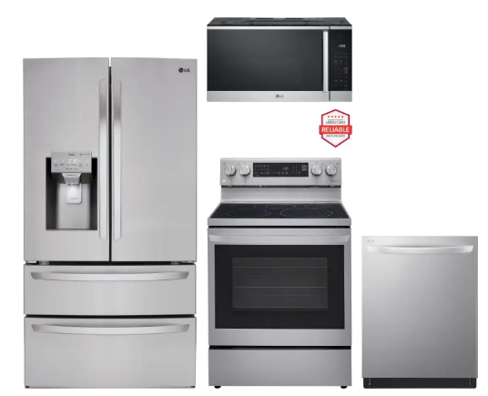 Revitalize your kitchen with this LG appliance ensemble, delivering a blend of sophistication and utility. This collection boasts a sleek side by side refrigerator, complemented by an electric range, an above-range microwave, and a built-in dishwasher. Elevate your culinary space with LG! Where advanced functionality meets timeless design, presenting an ideal enhancement for your kitchen.
