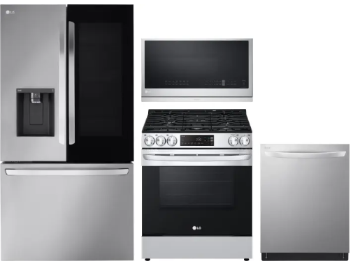 Revitalize your kitchen with this LG appliance ensemble, delivering a blend of sophistication and utility. This collection boasts a sleek side by side refrigerator, complemented by a range, an above-range microwave, and a built-in dishwasher. Elevate your culinary space with LG! Where advanced functionality meets timeless design, presenting an ideal enhancement for your kitchen.