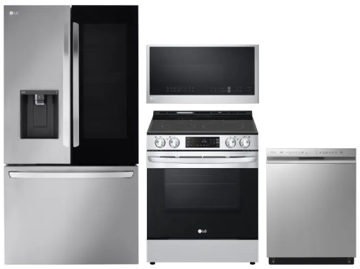 LG LGRERADWMW21211 4 Piece Kitchen Appliances Package with French Door Refrigerator