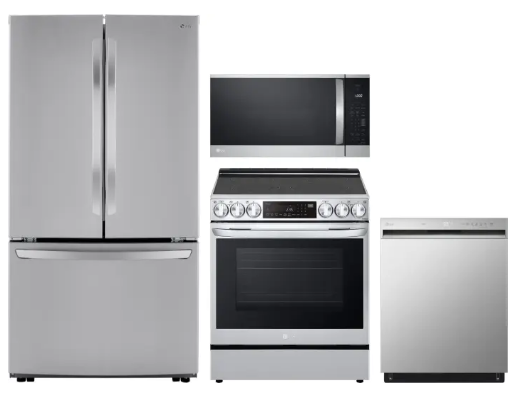 Revitalize your kitchen with this LG appliance ensemble, delivering a blend of sophistication and utility. This collection boasts a sleek side by side refrigerator, complemented by an electric range, an above-range microwave, and a built-in dishwasher. Elevate your culinary space with LG! Where advanced functionality meets timeless design, presenting an ideal enhancement for your kitchen.