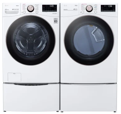 LG LGWADREW40003 Side-by-Side on Pedestals Front Load Washer and Electric Dryer Set in White