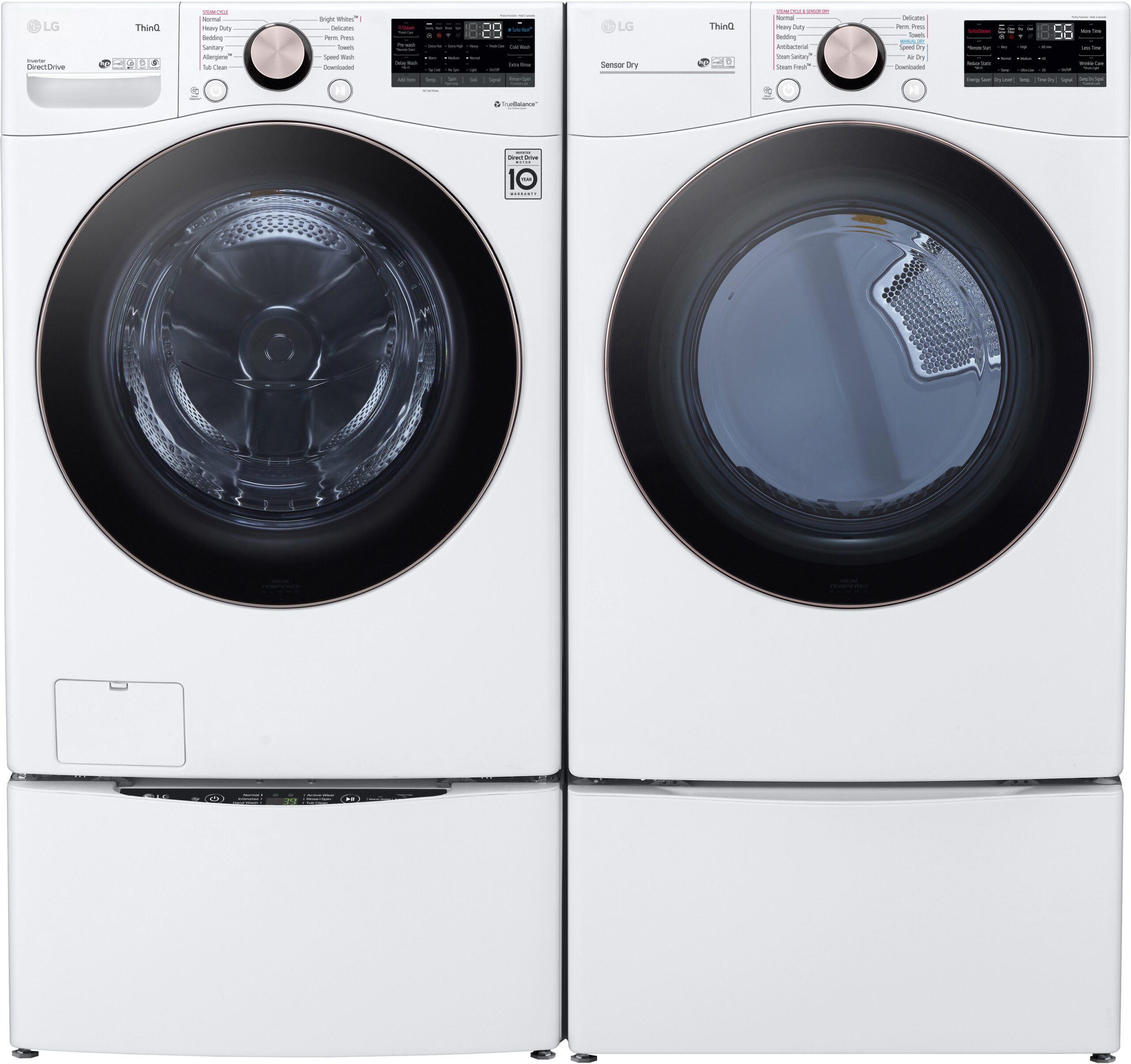 LG LGWADRGW40003 Side-by-Side on Pedestals Front Load Washer and Gas Dryer Set in White