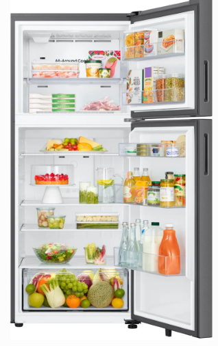 - 18 cu. ft. capacity Top Freezer Refrigerator with All-Around Cooling is beautifully designed with a modern look that blends seamlessly into your kitchen.